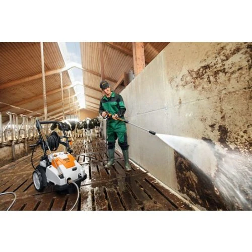 Combinant longévité et ergonomie, le nettoyeur haute pression RE 362 PLUS de Stihl est équipé d’un moteur triphasé à régime de rotation lent, d’une pompe en laiton ainsi que de pistons céramiques, ce qui le rend idéal pour les tâches de nettoyage difficiles et les exigences extrêmes. Il dispose de deux réservoirs à détergents de 2,5 L avec passage de l’un à l’autre à commutation par bouton. Et le transport de la machine se fait très facilement grâce au guidon rabattable. En plus, grâce au deuxième tube en acier avec buse ronde, le changement de buse se fait rapidement et l’enrouleur de tuyau intégré à la machine facilite le travail.