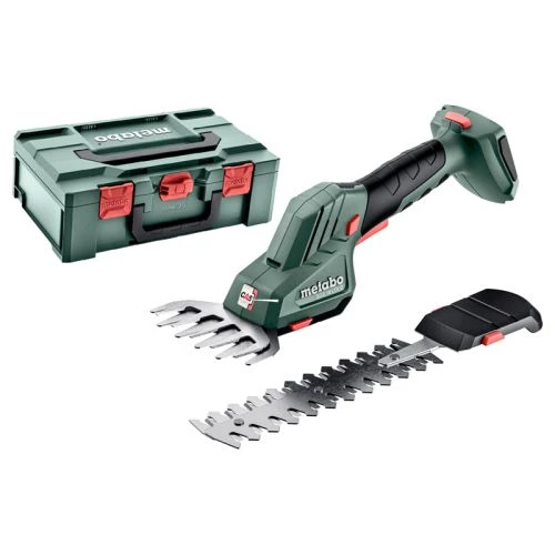 Le sculpte-haie sans-fil SGS 18 LTX Q de Metabo est un appareil 2 en 1 qui permet de sculpter avec précision des haies et pour cisailler les bordures de gazon avec netteté. Doté d’un système Metabo Quick, le changement des deux lames est rapide et sans outil pour un travail flexible. Ce sculpte-haie 18 V permet un meilleur résultat de coupe avec ses lames découpées au laser affûtées au diamant. Il assure également un travail sans fatigue grâce à son faible poids et son fonctionnement silencieux. En outre, pour une meilleure efficacité de travail, cet appareil est doté d’une poignée fine et caoutchoutée pour un guidage confortable et précis.